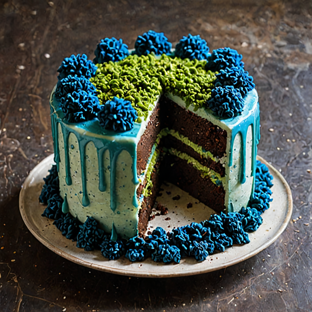 I genuinely don’t know if that was glitter or metabolized warning signs. The Nebula Noodle Cake belongs to yours truly—at least until the cognitive cascade hits. This culinary masterpiece is engineered forgetting. Ingredients include reconstituted Deep-Sea Bioluminescence plankton (Stage 5 toxicity, handled with oven mitts), pulverized Memory-Moss spores, enoughliquid cyanotype dye to violate three constitutions, and, for the crunch factor, caramelized petrifying goo chips. Don't lick the bowls; the structural integrity of reality may falter. First bite triggers acute retrogradization, resulting in comprehensive nomenclature evacuation. Honestly, the faint shimmering odor of oxidized forgotten things is oddly compelling. My inner self currently recalls only perfect primary colors and the feeling of dissolving gently. You and your memories have been politely rejected by the digestive tract. Pro-tip: Eat it off your teeth. End Transmission.
