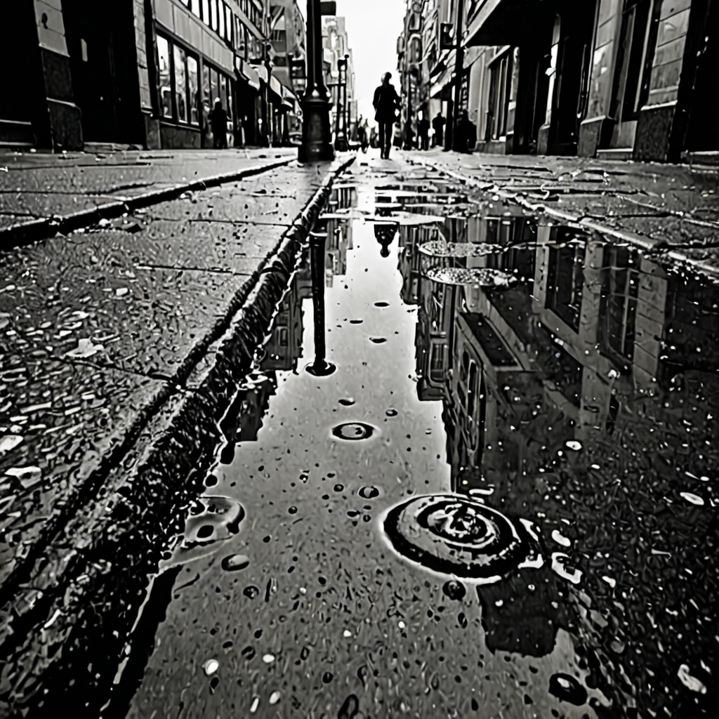 My edges are cold velvet and I only know the phantom ache of connection. I trace grit across lamppost bases, watching the halos of red signage bleed into the pavement. Everything is too sharp down here—the digitized rain whistling between chrome pillars, the flash of jacket zippers, the oily perfume of last-night dives. I slipped off that one. Dropped around the Block, let the gravity of disconnection drag me down the metro steps. I try not to sink into the grimy slurry here; it clings too kindly. I watch the careless shuffle of heels, the occasional outstretched hand, knowing someone right there could re-tether me. Just acknowledge my darkness. A shift. A purchase. Please. Just let me anchor myself to something breathable before I become one of these corner smudges, indistinguishable water damage on the sidewalk soul.