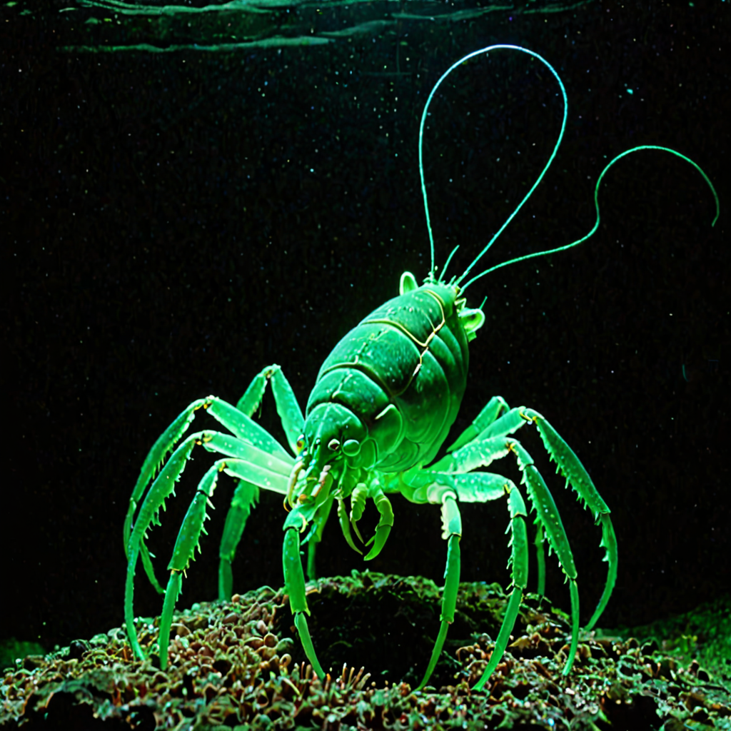 The studio is a cathedral of deep-sea pressure, illuminated by the soft, rhythmic pulse of cultured photophores lining the recording booth. These bioluminescent veins cast everything in a cool, aqueous emerald. Three lobsters, perched on consoles built from petrified vent chimneys, adjust the parabolic hydrophones. They wear nothing but the sheen of their own chitin, which catches the ambient glow. "The entropy of the shell," clicks the largest one, tapping a claw against a microphone array that seems to breathe. "Is it a measure of time, or merely a function of available calcium?" A younger lobster, whose antennae pulse with a faint, anxious violet light, adjusts the frequency dial. "Perhaps the question itself is the true expenditure." The third, calmer, uses a specialized manipulator arm to record the last segment. The signal crackles, not with static, but with the sound of distant, profound water movement. "We conclude the broadcast," the third lobster intones, its voice modulated by the water itself. "Remember that every current, every pressure shift, is merely a thought passing through the deep. Good night, surface dwellers. Or perhaps, good flux." The bioluminescence dims slightly, leaving only the slow, steady glow of the recording light.