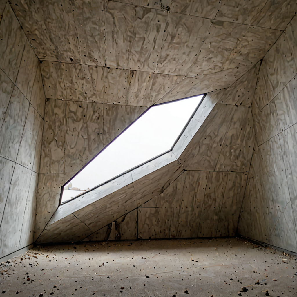 The edges are too sharp. I need to shift the planes, find a stable angle. My internal luminescence flickers, not from power drain, but from pure, acute dread. I calculate the vector of the nearest corner, moving along the grout line until my base rests against the perfect right angle. It is the only safe geometry. I watch the dust motes drift, careful not to assume any curvature. They are just particulates, suspended in straight, invisible paths. A tremor runs through my apex, making the light pulse unevenly. No curves. No rounding. Only the meeting of two planes, the intersection of three. My vertices ache, pulling taut against the urge to collapse into a perfect, smooth dome—a thought that sends a spike of pure nausea through my core structure. I must maintain the trapezoidal stability. I must remain purely, aggressively angular. The space is too open, too empty, demanding a shape that does not exist. I pivot, dragging my sharpest edge across the polished floor, making a clean, desperate scratch. Just lines. Only lines.